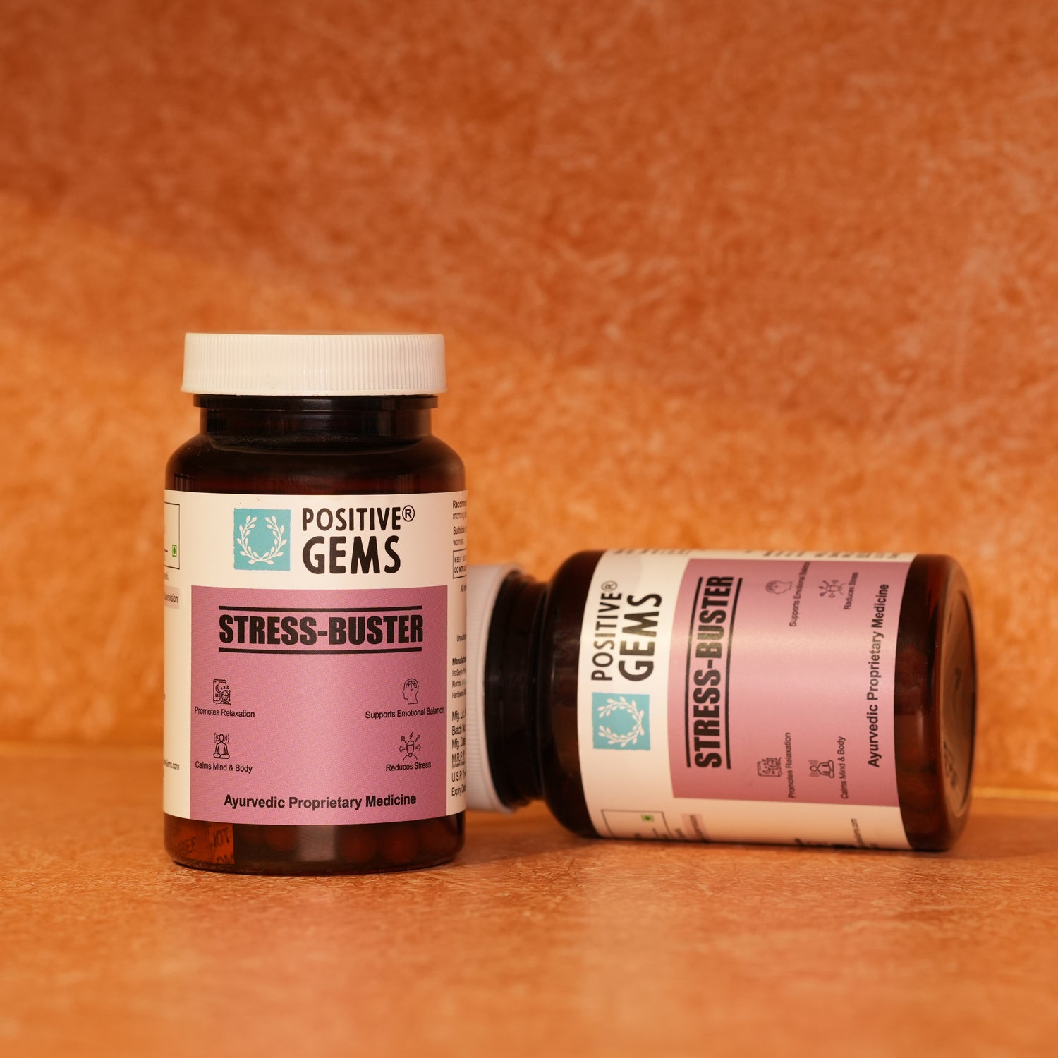 PositiveGems Stress Buster Capsules are an Ayurvedic supplement formulated to alleviate stress and anxiety, promoting a calmer and more balanced life. Each capsule combines potent herbs known for their adaptogenic and calming properties.